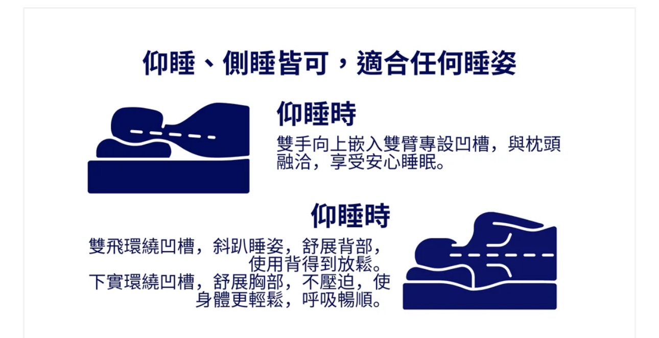 • 適合不同睡姿:仰臥、側睡及趴睡